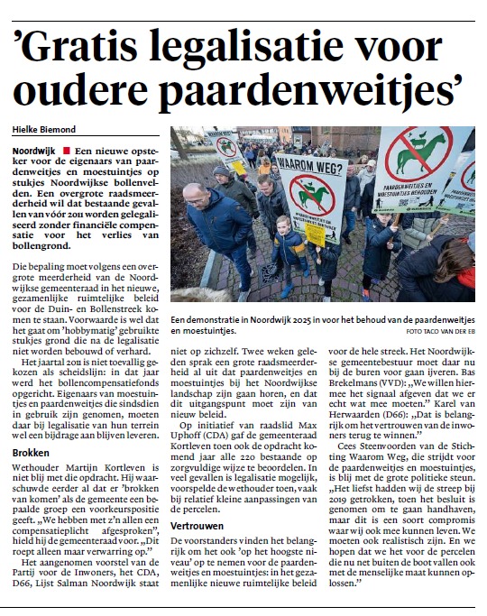 Leidsch Dagblad: Aanpak van paardenweitjes in Noordwijk voorlopig gestaakt